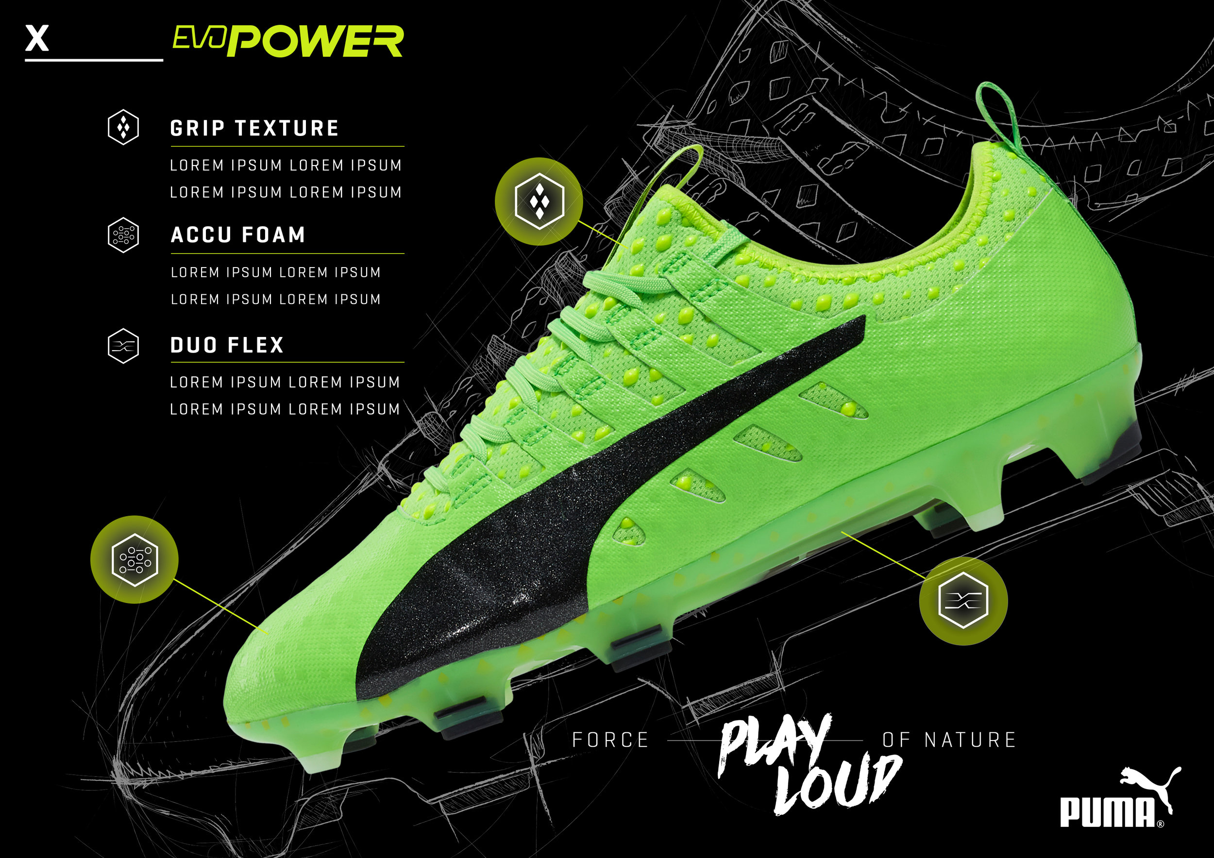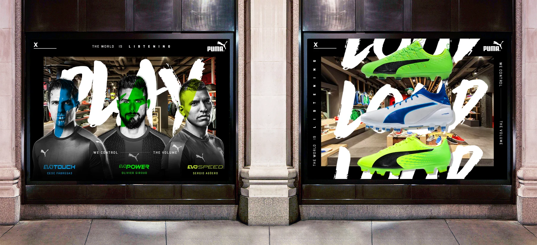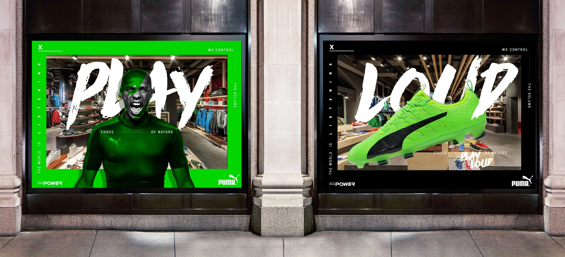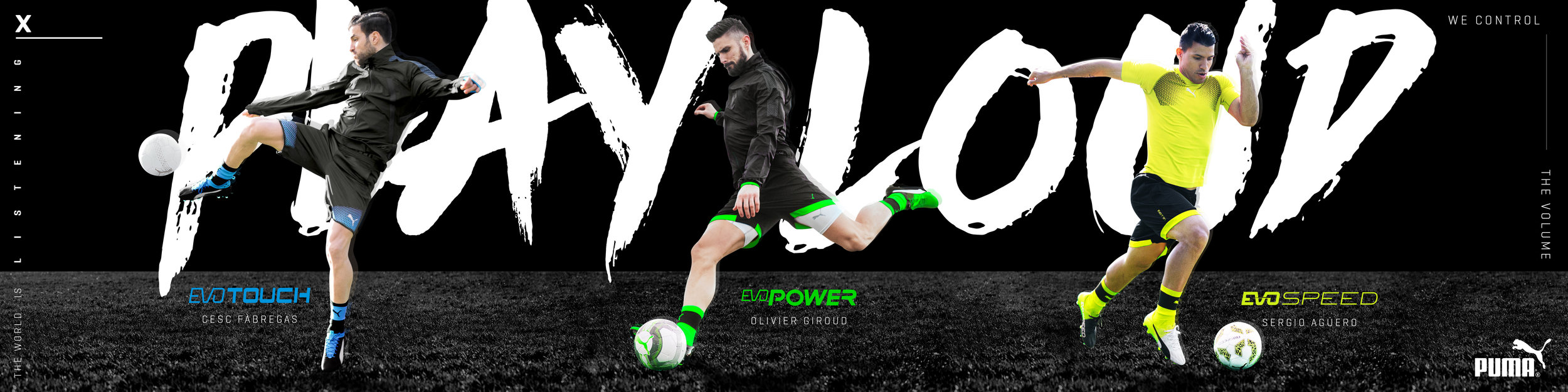 For the 2017 year, our design team developed a marketing system for the CTA PLAY LOUD, featuring portraits of athletes and three boot silos. The below featured content is a sampling of the mock ups delivered for execution by the internal marketing team at PUMA.